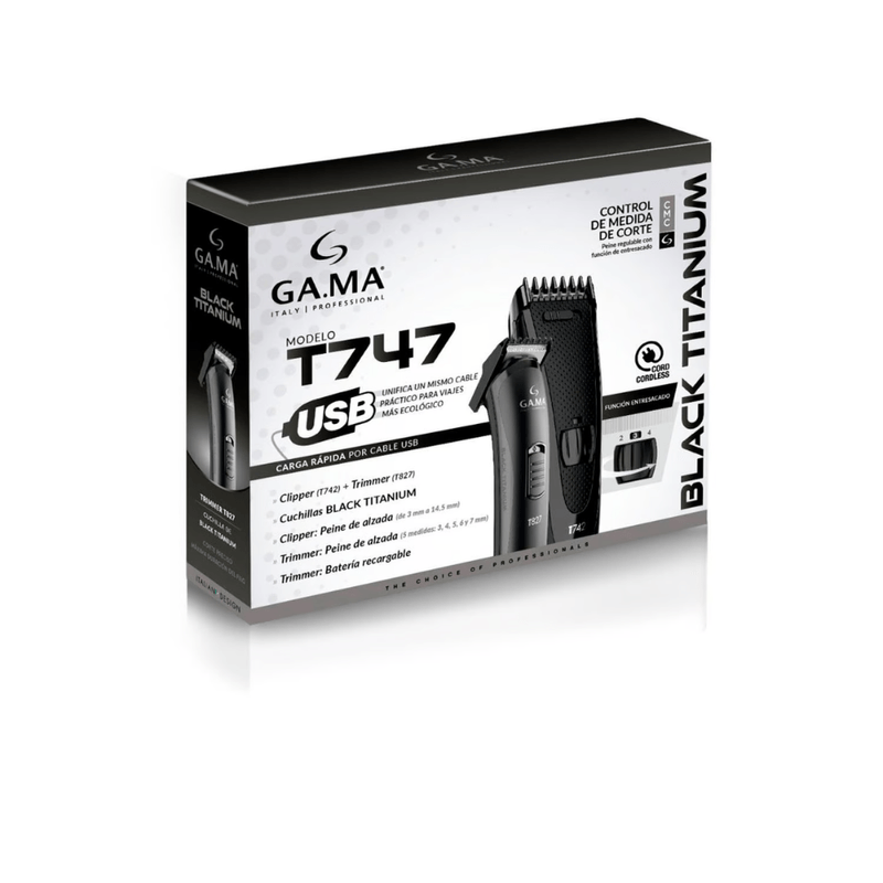 La Clipper GA.MA Black Titanium T747 BAT es la herramienta perfecta para quienes buscan un corte de cabello preciso, potente y con acabado profesional desde la comodidad de su hogar. Diseñada con tecnología avanzada y materiales de alta calidad, esta máquina garantiza un rendimiento óptimo y una larga durabilidad.