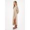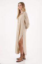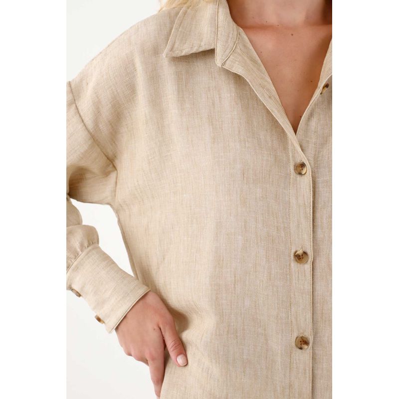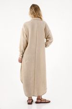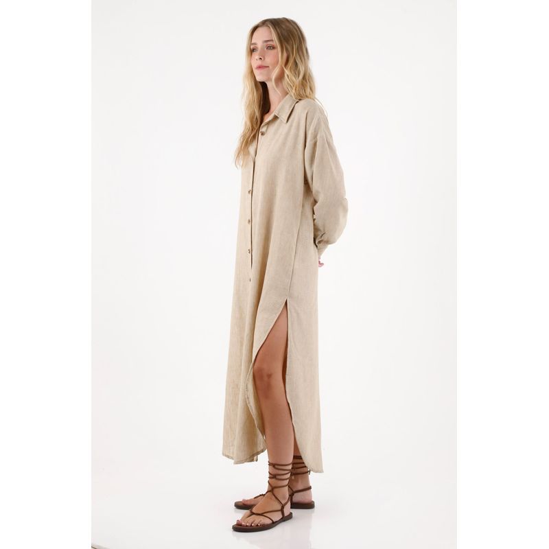 Este cover up largo es ese complemento perfecto que transforma tus outfits con su silueta fluida, su manga larga y su cuello clásico que aporta un toque pulido. Su diseño incluye ajuste de botones en frente, lo que te permite llevarlo abierto para un look relajado o cerrado para un estilo más estructurado. La tela con textura añade profundidad visual y un acabado moderno que lo convierte en una prenda ideal para capas ligeras.