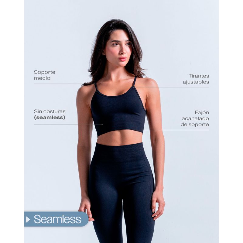 Top seamless con tirantes ajustables y soporte medio, elaborado en estructura acanalada en el fajón. Ideal para realizar cualquier actividad física. Su diseño funcional brinda apoyo y confianza al realizar ejercicios de alto impacto, yoga o entrenamientos fitness.