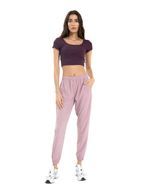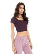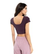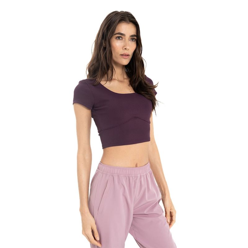 Crop top deportivo color uva para mujer en manga corta. Esta prenda no solo te ofrece comodidad si no al mismo tiempo un ajuste perfecto. Cuenta con escote amplio, es fresca, moderna, versátil y elegante perfecta para cualquier ocasión.