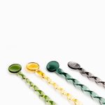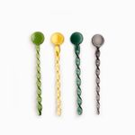 Este set destaca por sus mangos con textura en espiral y una vibrante paleta de colores en tonos ámbar, verde, rosa y azul, ideales para añadir un acento lúdico a tus postres o bebidas. Fabricadas en vidrio borosilicato, un material premium que ofrece una ligereza sorprendente y una gran resistencia a diferentes temperaturas.