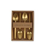 Cucharas en acero inoxidable color dorado, cubiertos para bocados de frutas y postres, su diseño es minimalista ideales para cualquier ocasión. No apto para alto tráfico.