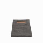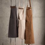 Este delantal gris es inspirado en los robustos delantales usados por los comerciantes, nuestra pieza de ramin protege la ropa. Esta confeccionado con un bolsillos y un ojal para guardar herramientas, toallas o teléfonos