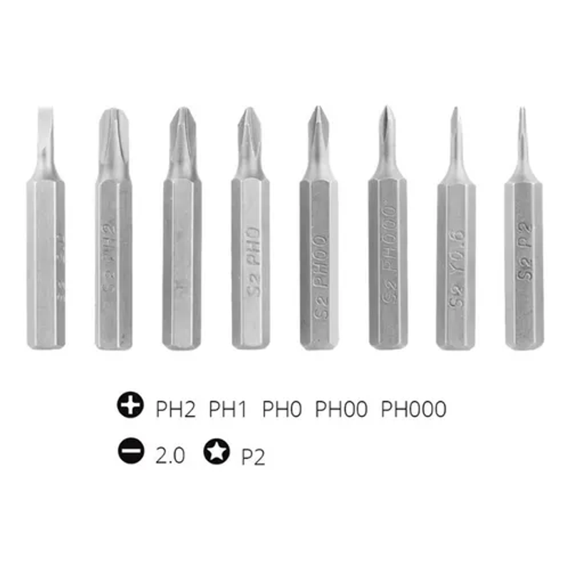 27 puntas milimétricas de alta calidad para múltiples tipos de tornillos.