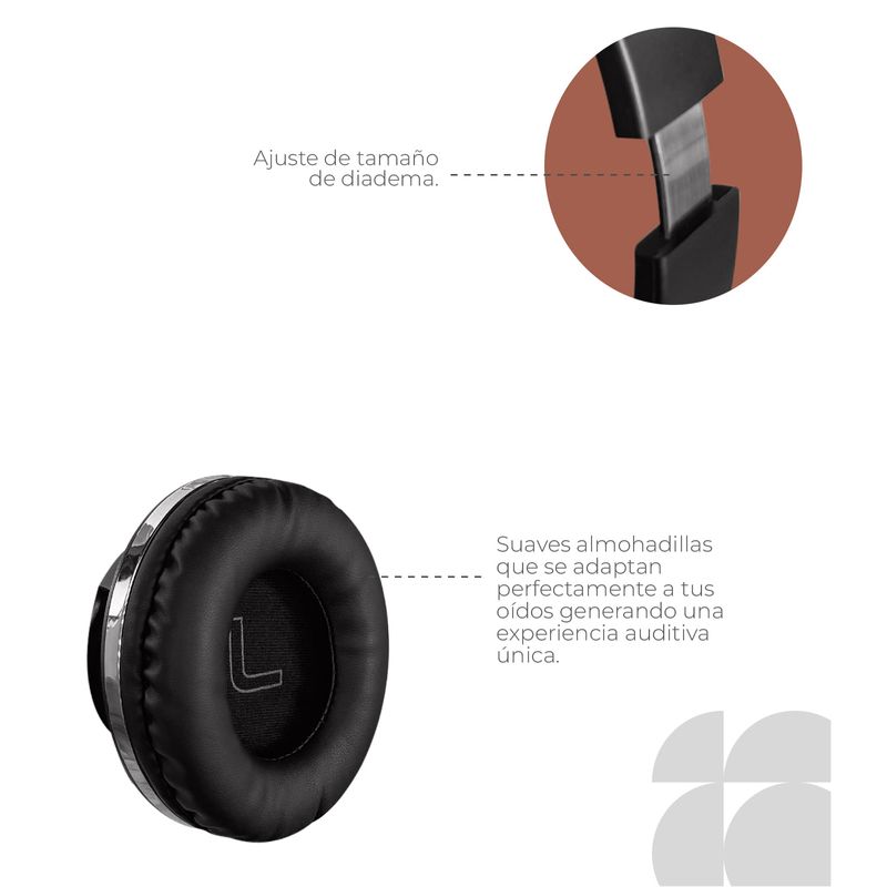 Sus almohadillas acolchadas y su diseño ergonómico aseguran un ajuste cómodo y seguro, reduciendo la presión en los oídos para un uso prolongado sin molestias.