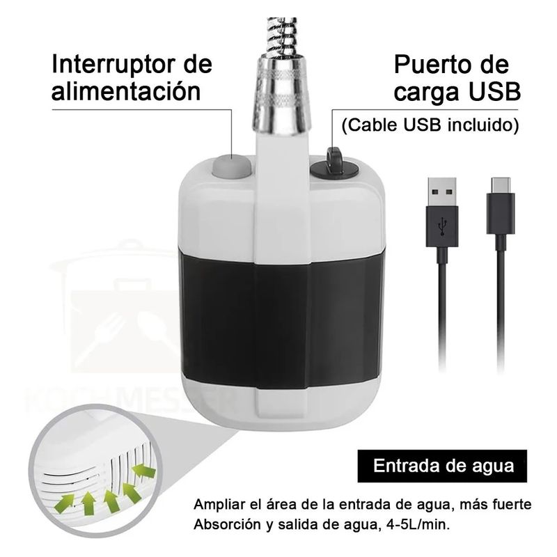 La Regadera Portátil Recargable es la solución perfecta para los amantes de la aventura que desean mantener las comodidades del hogar. Este modelo es fácil de usar y transportar, lo que lo hace ideal para viajes de campamento, excursiones o cualquier actividad al aire libre. Su boquilla de ducha para exteriores y su juego de ducha tipo lluvia te permitirán disfrutar de una experiencia de ducha similar a la de tu hogar, sin importar dónde te encuentres.
