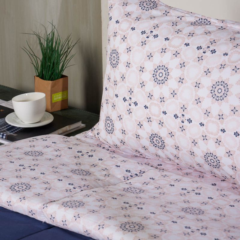 Confección: Edredón o Comforter con tapa delantera tela estampada, tapa trasera en tela fondo entero.