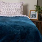 Edredón cobija un práctico producto con el cual podrás vestir tu cama y a la vez abrigarte con una suave y comfortable cobija en tela flannel fleece. Edredón o Comforter incluye: 1 fundón para la medida sencilla y 2 fundones de la medida semidoble en adelante. Edredón adelante tela lisa estampada y atrás fondo entero en tela flannel fleece. fundones en tela estampada con pespunte en todo el contorno. Los productos de nuestra colección se empacan en un estuche de la misma tela, de esta manera generamos menos desperdicios, la bolsa en tela tiene un amarre con una hiladilla, aYES le puedes dar un segundo uso y ayudar a cuidar el ambiente — Edredón — Sencillo: 175 x 240 cm Semidoble: 195 x 240 cm Doble: 215 x 240 cm Extradoble: 235 x 240 cm King: 275 x 240 cm Fundones estándar: 50 x 70 cm; Fundones para la talla King 50 x 90 cm Composición: 50% Algodón Orgánico – 50% Poliéster