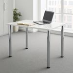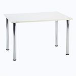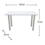 Escritorio blanco moderno con patas metálicas cromadas. Su superficie en melamina con protección 99.9% antimicrobiana ofrece un ambiente limpio y luminoso, mientras que sus patas metálicas cromadas aportan estabilidad y un toque elegante. Ideal para oficinas, estudios o cualquier rincón creativo en casa.