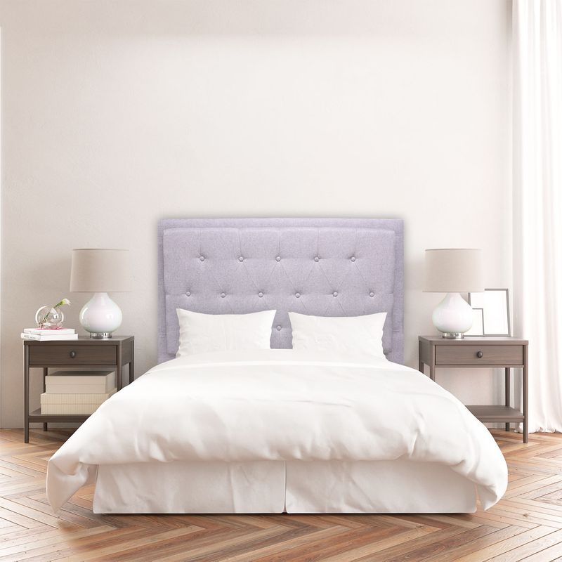 - Material: Tapizado en tela tipo lino de alta calidad, color gris claro