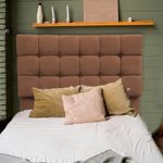 Espaldar de Piso 140x115, tapizado tela Lino color Marron, resistente a las manchas y de fácil limpieza, estructura fabricada en madera Pino inmunizada, relleno en espuma de alta densidad.