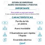 Este modelo de estufa empotrable gas natural acero inoxidable cuenta con cuatro quemadores: tres semi-rápidos y uno rápido, ideales para lograr una cocción eficiente. Las dos parrillas rectangulares en hilo reforzadas con platina proporcionan mayor estabilidad para tus ollas, gracias a sus seis puntos de contacto por quemador. El encendido eléctrico ahorra tiempo y elimina la necesidad de fósforos, facilitando la experiencia diaria en la cocina.