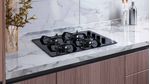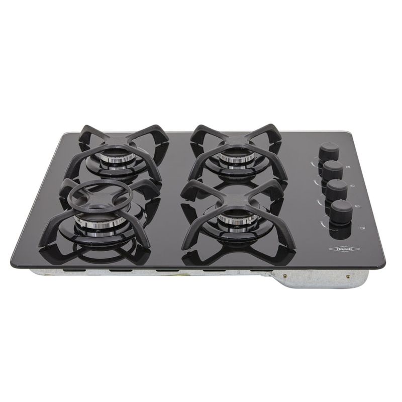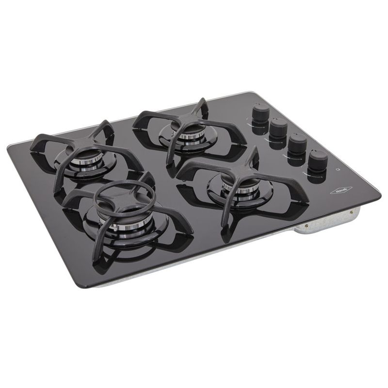 Estufa de empotrar a gas en Cristal negro de 60X43 cm, con un vidrio de 8mm de espesor que aporta robustez y seguridad. Cuenta con 4 fogones en diferentes tamaños que se acomodan a los diámetros de tus ollas y pesos de tus preparaciones y 1 fogón rápido 35% más potente que agiliza los tiempos de cocción. Parrillas en hierro fundido para más estabilidad y seguridad y aro wok ideal para cocinar en recipientes especiales. Es de muy fácil limpieza gracias a sus perillas removibles. Enciende solo con girar la perilla