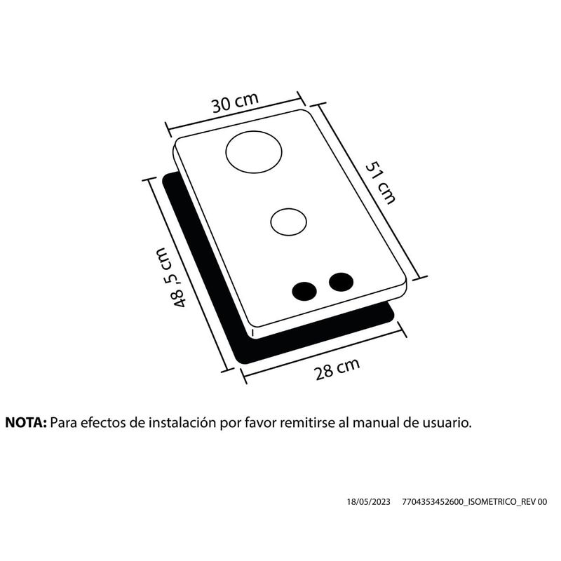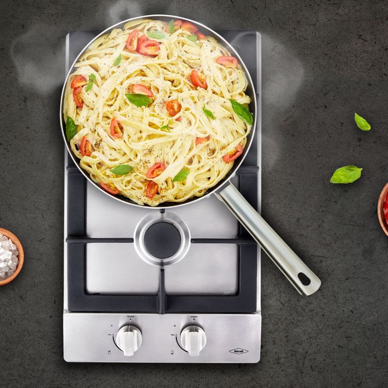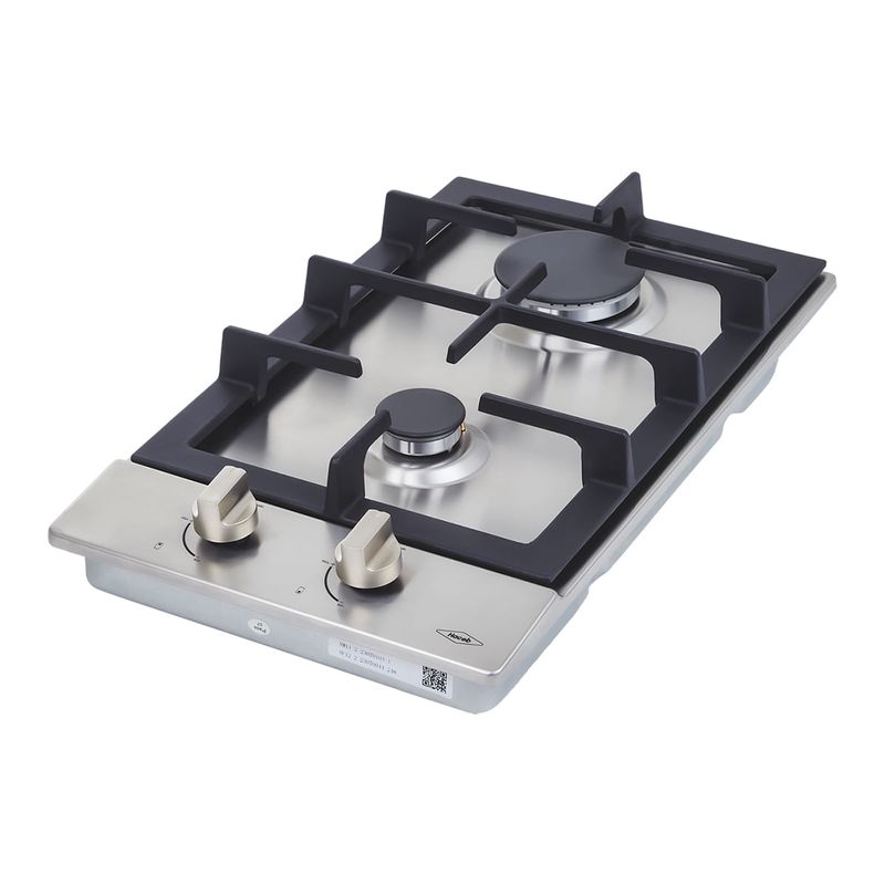 Estufa de empotrar a gas en acero inoxidable de 30 cm de ancho que cuenta con 2 fogones en diferentes tamaños que se acomodan a los diámetros de tus ollas y pesos de tus preparaciones. Su diseño seguro incluye un sistema de termoseguridad que ante la ausencia de llama, interrumpe automáticamente el flujo de gas. Además, cuenta con parrillas de hierro fundido que proporcionan estabilidad y seguridad durante la cocción. La zona antiderrames se convierte en un aliado eficaz para mantener la estufa impecable, impidiendo que los líquidos se infiltren en el interior del mueble y facilitando así la tarea de limpieza.