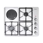Estufa de empotrar Tandoori inox 3x1 en acero inoxidable de 60x51 cm. Fogones en diferentes tamaños que se acomodan a los diámetros de tus ollas y pesos de tus recetas favoritas. Tres parrillas elegantes en hierro fundido continuas para más estabilidad y una resistencia blindada de 120v. Encendido automático (basta con girar la perilla). Estufa de empotrar de fácil limpieza gracias a la mesa, su zona antiderrames y sus perillas removibles.