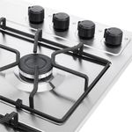 Estufa de empotrar de 66x54 cm a gas natural, con mesa de acero inoxidable de gran durabilidad y resistencia al calor. Cuenta con fogones de diferentes tamaños, que se adaptan a tus necesidades de cocción. Su zona antiderrames facilita la limpieza, mientras que los quemadores sellados evitan la filtración de líquidos al interior. El encendido automático la hace práctica y fácil de usar.