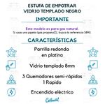 Estufa de vidrio templado negra modelo 5883 ideal para quienes desean modernizar su cocina con elegancia, seguridad y funcionalidad. Esta estufa está fabricada con vidrio templado negro de 8 mm de grosor, lo que garantiza una alta resistencia al calor, los impactos y el uso diario en cocinas familiares o profesionales.