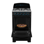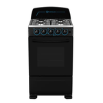 La estufa de piso Mabe de 20" en color negro combina diseño compacto y funcionalidad para tu cocina. Cuenta con 4 quemadores estándar de alta eficiencia, encendido electrónico por botón y horno de 63 L con termocontrol. Su puerta panorámica con vidrio negro serigrafiado y recubrimiento interior Easy Clean Max facilitan la limpieza y brindan un acabado moderno. Gas Natural
