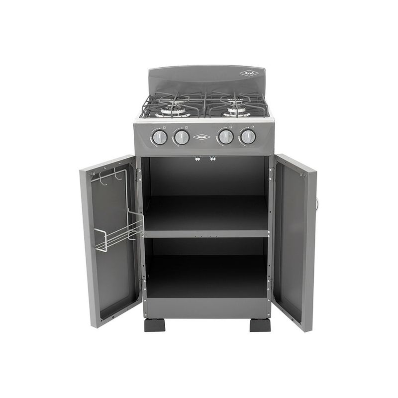 La estufa Romero Gabinete Haceb a gas natural color plata es el mejor aliado de tu cocina, con su amplio gabinete y práctico porta-utensilios, su mesa en acero inoxidable, su espaldar para proteger para permitir la fácil limpieza y su versatilidad de cocción con sus fuentes de diferentes tamaños.