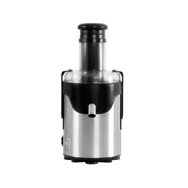 Extractor de jugos Kalley de 750W con cuchilla y filtro en acero inoxidable, dos velocidades, ducto amplio para frutas enteras y recipiente para pulpa desmontable.