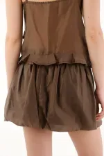Esta falda para mujer está diseñada en un tejido plano liviano que aporta movimiento y suavidad en cada paso. Su silueta corta con efecto bombacho le da un toque moderno y voluminoso, perfecto para crear looks frescos y con personalidad. La pretina con elástico interno brinda comodidad absoluta, mientras que el cordón ajustable permite adaptar el fit a para un ajuste seguro y favorecedor.