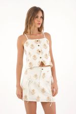 Versátil, coqueta y con estilo. Una falda que luce muy bien con cualquier prenda, pero nada como combinarla con su camisa de tiras a juego y crear un total look que habla por sí solo.