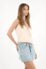 Esta falda corta en denim es la mezcla perfecta entre actitud y estilo casual. Su ruedo asimétrico y desflecado le da ese aire despreocupado que invita a combinarla con camisetas crop, camisetas estampadas o incluso una camisa oversize. Añade tenis deportivos para un look diario o botas texanas de tiras para un outfit más chic; esta falda se adapta a cualquier mood y plan de tu día.