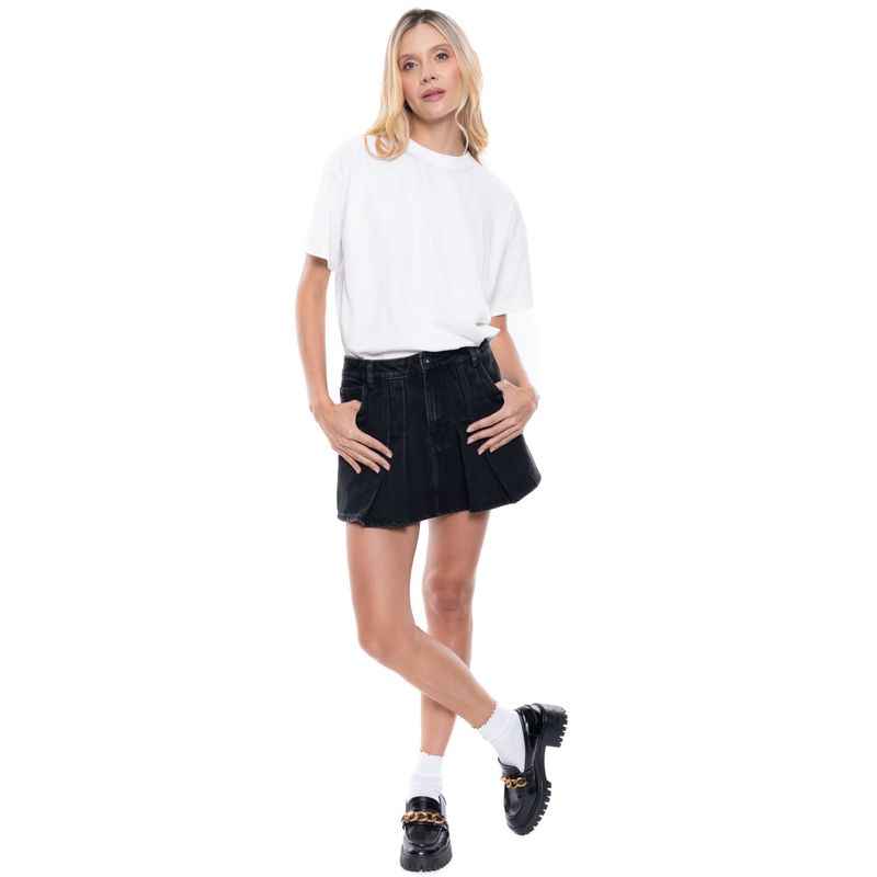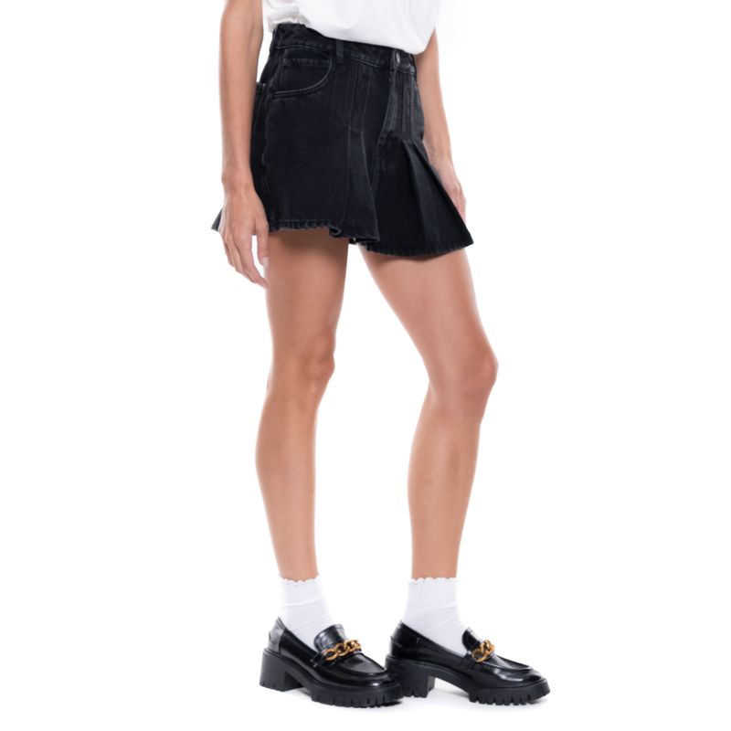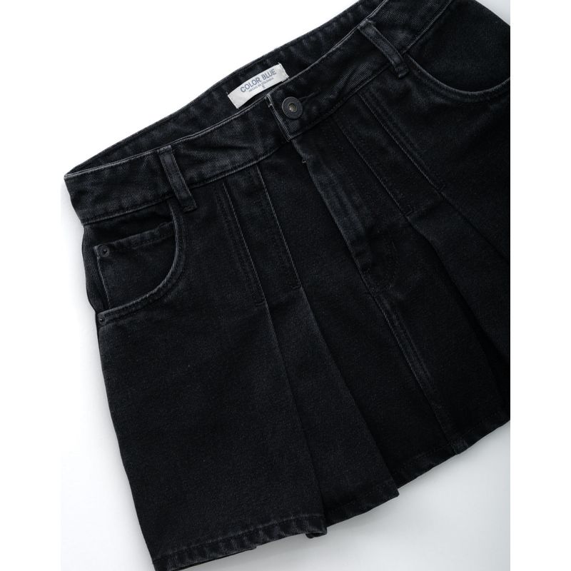 Falda corta en denim negro con diseño de tablas delanteras que aportan estructura y movimiento. Cuenta con pretina con pasadores, bolsillos tipo jeans y cierre con cremallera y botón. Una prenda moderna que combina lo clásico del denim con detalles renovados. color blue nace en 1984, fue creada para ser una marca honesta y familiar, la cual se enfocaba principalmente en la producción y exportación de ropa. hoy somos un equipo que trabaja con pasión y hemos cambiado completamente nuestra filosofía. nuestra marca está hecha para ambos géneros con un estilo muy nuestro. somos una empresa colombiana con experiencia en el mercado a través de la comercialización de prendas de vestir.