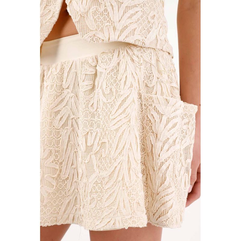 Falda corta corte A con textura botánica en algodón beige para mujer