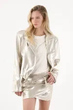 Una falda que captura la luz necesaria, perfecta para destacar con elegancia. Su textura con destellos metálicos encaja con chaquetas western, capas en efecto cuero o tops negros para un look de noche. Ideal para combinar con botas, tacones o tenis, según tu preferencia; úsala para crear un outfit que mezcla fuerza, brillo y naturalidad.