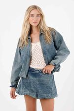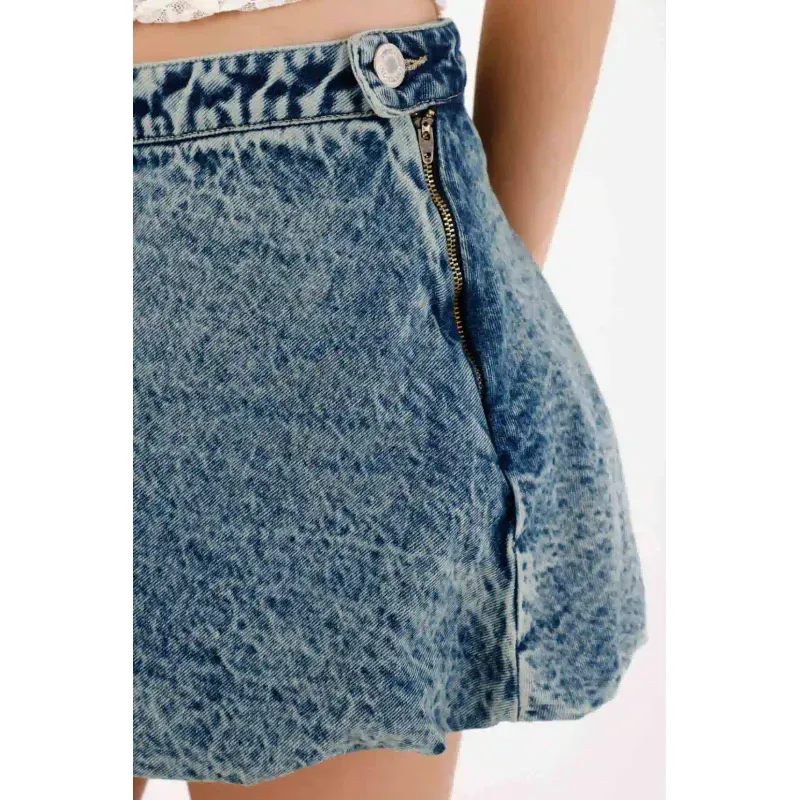 Confeccionada en denim, con estructura y movimiento, se convierte en una prenda clave para darle un nuevo aire a tu clóset. Su silueta corta tipo globo y su diseño en tono medio, le dan ese aire cool que conecta tanto con tenis deportivos, como con botas de plataforma. Además, puedes llevarla en set con su chaqueta para un total look denim.