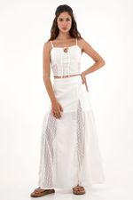 ¡El set perfecto para fluir con estilo! Esta falda combina lo mejor de la frescura y el diseño artesanal con cortes en tela tejida que aportan textura y movimiento.