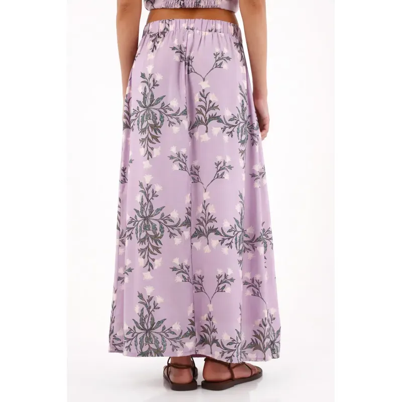 Con su estampado floral lleno de vida, esta falda se convierte en la protagonista de un look versátil y romántico. Los prenses en el delantero aportan caída natural y amplitud, mientras la pretina lisa en frente estiliza la figura y la pretina elástica en posterior brinda comodidad al ajuste.
