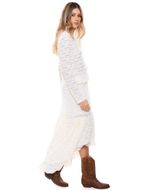 Falda larga femenina y sofisticada, confeccionada en delicado encaje con forro interno que llega a la mitad del muslo, aportando un sutil efecto de transparencia. Su diseño se complementa con boleros en la parte inferior, creando movimiento y un toque romántico. Ideal para eventos especiales o para elevar tus looks casuales con un aire elegante. Combínala con blusas ligeras, tops o camisas para lograr un estilo versátil y moderno. color blue nace en 1984, fue creada para ser una marca honesta y familiar, la cual se enfocaba principalmente en la producción y exportación de ropa. hoy somos un equipo que trabaja con pasión y hemos cambiado completamente nuestra filosofía. nuestra marca está hecha para ambos géneros con un estilo muy nuestro. somos una empresa colombiana con experiencia en el mercado a través de la comercialización de prendas de vestir.
