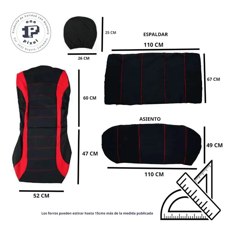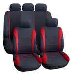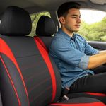 Juego de fundas universales para asientos de automóvil diseñadas para renovar el interior del vehículo, proteger la tapicería original y ofrecer un estilo deportivo. Fabricadas con materiales resistentes y de fácil limpieza, se adaptan a la mayoría de autos sedán y camionetas compactas. Su diseño combina color negro con detalles en rojo para darle un aspecto moderno y elegante al interior.