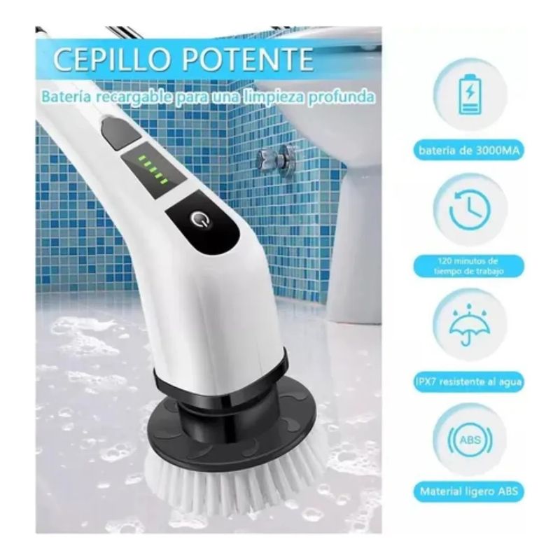 La descripción que mencionas generalmente corresponde a cepillos de limpieza para superficies del hogar . Tienen hasta 9 cabezales intercambiables y velocidades de giro rápidas (entre 200 y 500?RPM), diseñados para eliminar grasa, polvo y suciedad en baños, cocinas, pisos y otros rincones difíciles