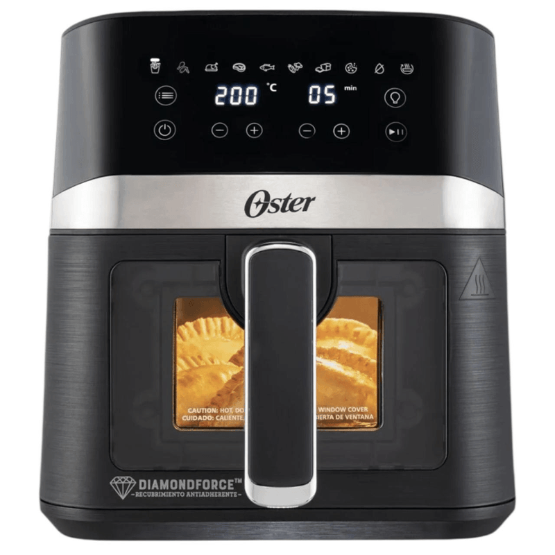 Descubre nuestra increíble freidora de Aire con recubrimiento OSTER DiamondForce, limpieza sin esfuerzo, versatilidad con mayor capacidad 4L y fácil de usar. Para nuestra generación de freidoras de aire OSTER, no existen imposible. Ahorra espacio y diseño único para tu cocina. ¿Qué estas esperando? Adquiere la tuya y cocina más saludable como todo un experto con OSTER. La bandeja de cocción tiene un capacidad de 4 lts Dos perillas para tiempo y temperatura Hasta 15 veces más fácil de limpiar Hasta 12 veces más duradera y resistente a rayaduras Olvídate de las comidas que se pegan
