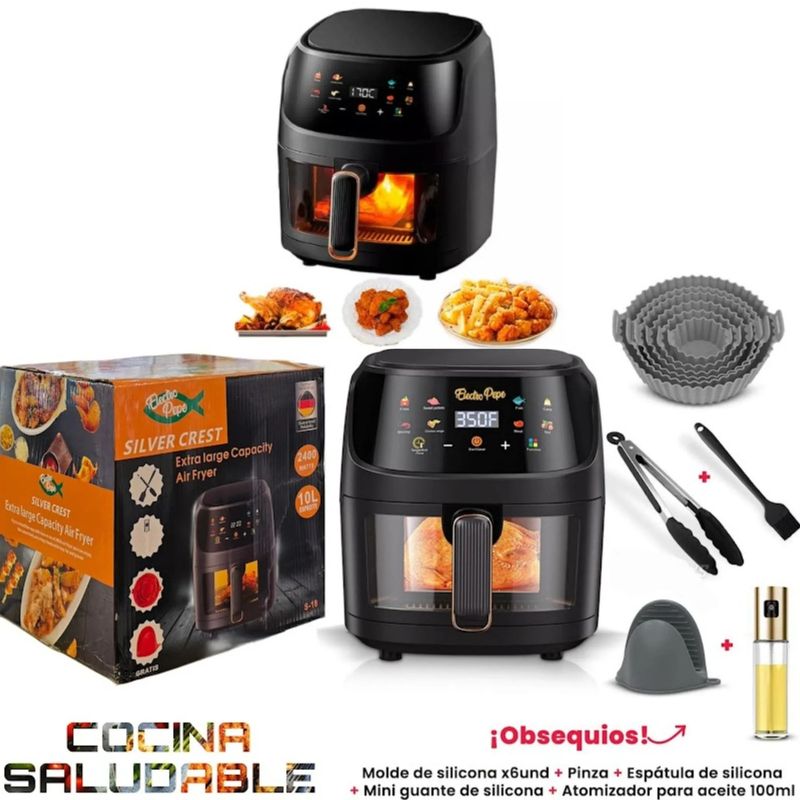 1-Airfryer Freidora De Aire Digital Sin Aceite Silver Crest 10 Litros
