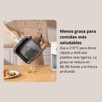 Asa a 210°C para dorar rápido y disfrutar platillos más ligeros. La grasa se reduce en 88.3%* frente a la fritura profunda.