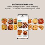 Escanea el código QR en la Xiaomi Air Fryer y accede a 101 recetas populares con pasos claros.