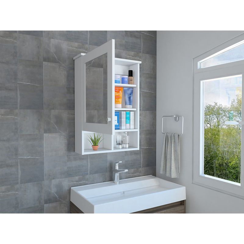Gabinete de Baño, con puerta espejo y tres entrepaños para ubicar objetos.