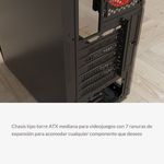 Compatibilidad con módulos de enfriamiento: Sección frontal: soporta 120/240/280mm de enfriador líquido, Panel superior: soporta 120/240mm de enfriador líquido, Sección posterior: soporta 120mm de enfriador líquido