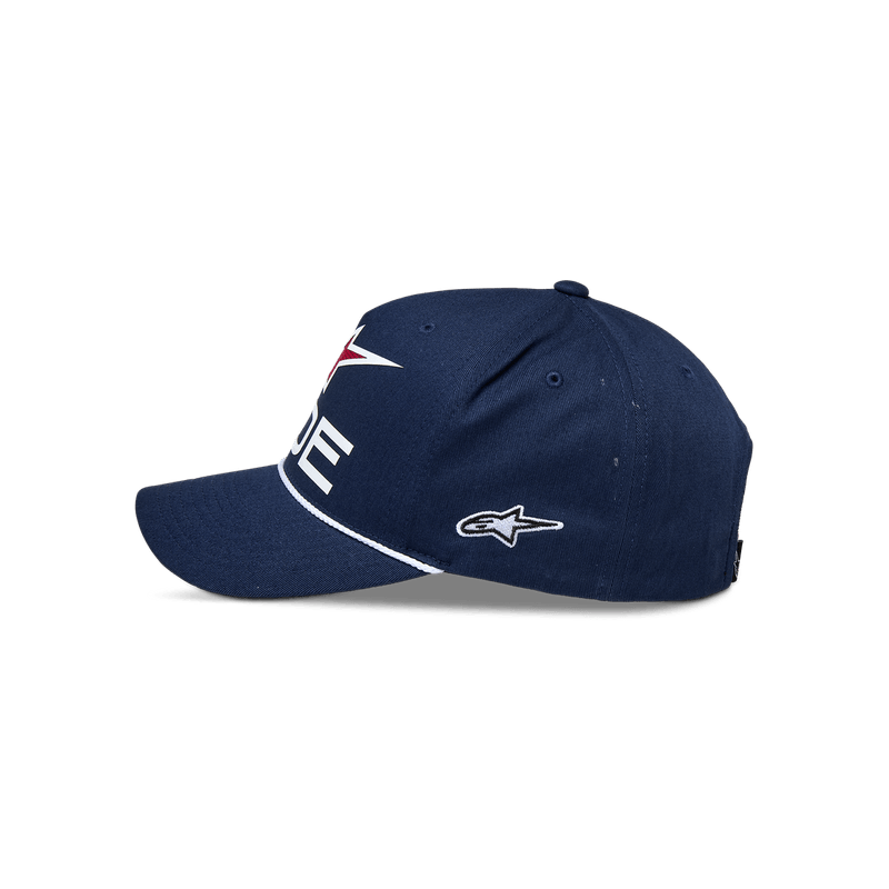 • Logotipo Astars Ride en 3D en la parte frontal, con logotipo lateral bordado plano y ribete de cuerda trenzada