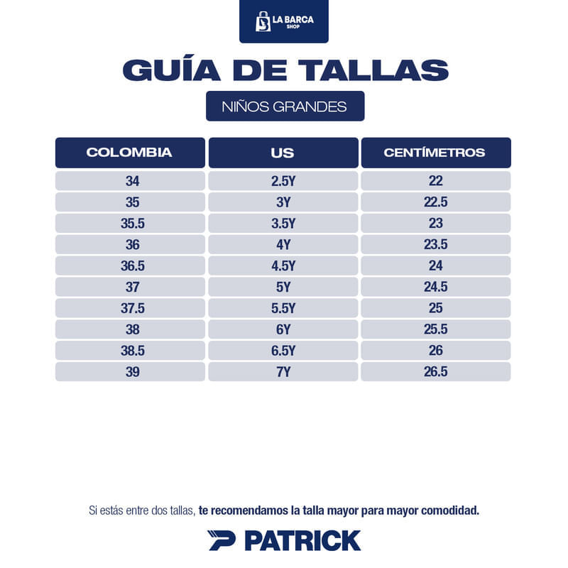 Presentamos estos guayos Patrick (ref. GAVI/SOCK/HG-J7), un calzado de fútbol diseñado para niños e incentivarlos, que tienen un ajuste envolvente, que garantiza estabilidad y control en el campo de juego. Este modelo incorpora un diseño tipo sock (calcetín) que ofrece mayor sujeción en el tobillo, ideal para entrenamientos y partidos en canchas de césped natural o sintético.