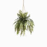 Helecho colgante en polietileno de 91cm, es una planta artificial ideal para decorar interiores. Es fácil de limpiar, no necesita cuidados extras. Es ideal para arreglos tipo tapete de plantas, sirve de follaje en diferentes espacios.
