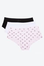 Panty en paqueteria X3 tipo hipster del segmento teen, elaborado en algodón con refuerzo en el mismo material, que brinda higiene y frescura en la zona intima, ideal para adolescentes que buscan comodidad y buen ajuste. El algodón es un material suave y transpirable, perfecto para ropa interior. Cuenta con un elástico interno y suave en la cadera que proporciona un buen ajuste y sujeción sin ser apretado, evitando que la prenda se deslice durante el uso. Con cubrimiento medio sobre las piernas y costados amplios que se ajustan sobre el torso. Con un delicado moñito en el frente que añde un detalle sutil y femenino.