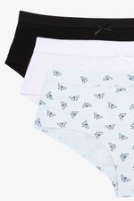 Panty en paqueteria X3 tipo hipster del segmento teen, elaborado en algodón con refuerzo en el mismo material, que brinda higiene y frescura en la zona intima, ideal para adolescentes que buscan comodidad y buen ajuste. El algodón es un material suave y transpirable, perfecto para ropa interior. Cuenta con un elástico interno y suave en la cadera que proporciona un buen ajuste y sujeción sin ser apretado, evitando que la prenda se deslice durante el uso. Con cubrimiento medio sobre las piernas y costados amplios que se ajustan sobre el torso. Con un delicado moñito en el frente que añde un detalle sutil y femenino.