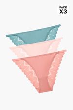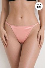 Panty con silueta tipo hipster en paquete de 3 unidades, diseñado para ofrecer cobertura media sobre las piernas y los glúteos. El frente se encuentra elaborado en microfibra con efecto satinado, que aporta un toque de lujo y feminidad. La parte posterior esta elaborada en encaje, un material que añade un detalle de sensualidad, este panty combina frescura y transparencia. Su diseño incluye delicados tirantes en los costados que añade un detalle sutil de sensualidad. Además, cuenta con un refuerzo en algodón que garantiza transpirabilidad e higiene en la zona íntima.