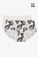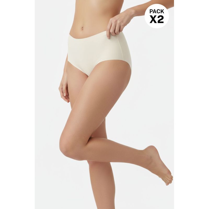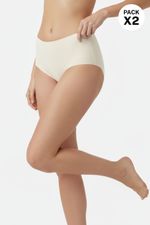 Panty tipo hipster en presentación por 2 unidades, pensado para brindar soporte sin sacrificar suavidad. Elaborado en algodón ligero y transpirable, con corte a ras en las terminaciones para evitar marcas. Su talle alto y costados anchos proporcionan mayor cubrimiento y realce natural de la silueta.
