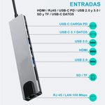 TECNOLOGÍAHub Adaptador Usb C 8 En 1 Multipuerto Lan